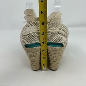 Pinaz Made in Spain Turquoise Blue & White Lace Up Espadrille Wedges Size 38 (US Size 7.5 to 8)