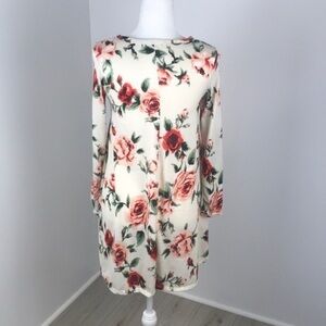Pinc Cream Floral Long Sleeve Dress Size M