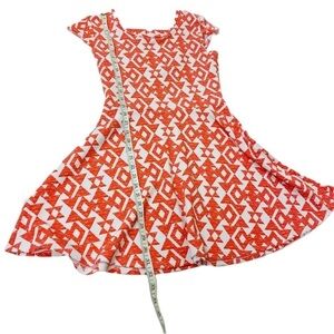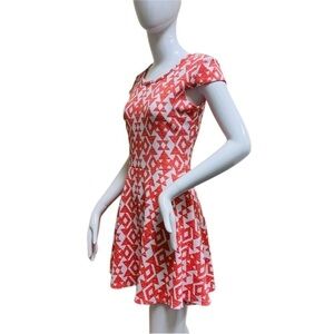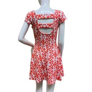 Flattering fit and flare waist and scoop neck 97% polyester Stretchy material coral and white pattern with super cute back