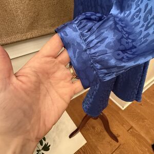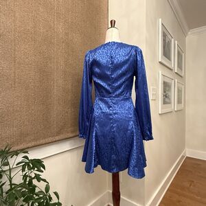 Pinch Boutique Royal Blue Satin Damask Leopard Print Dress Small