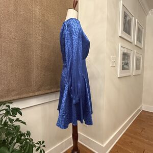 Pinch Boutique Dress Size Small Royal Blue Satin Damask Leopard Print Midi