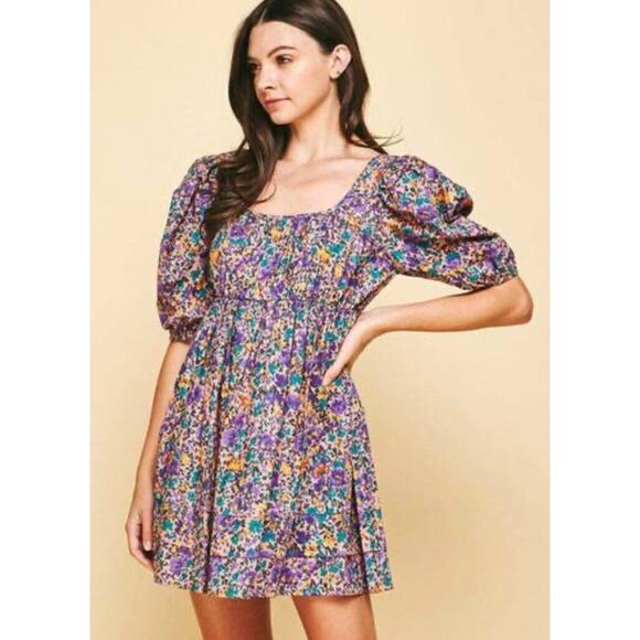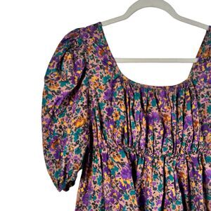 Pinch Floral Smocked Puff Sleeve Mini Dress Preppy Cottage Womens Size Large