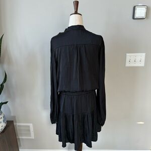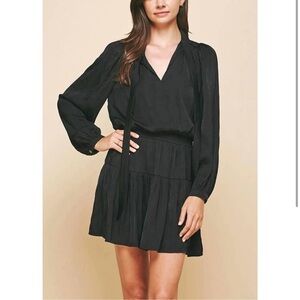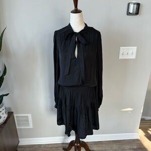 Pinch Long Sleeve Smocked Waist Dress with Front Tie - Satin-Like Fabric