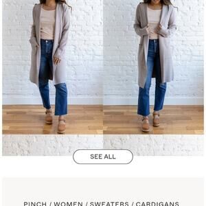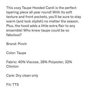 Pinch Taupe Long Hooded Knit Cardigan Womens M/L Front Pockets