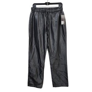 Pinch Women's Black PU Drawstring Waist Pull-On Pants - L