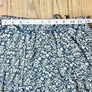 Blue and white floral elastic waist with ties. Flowy flounced design.