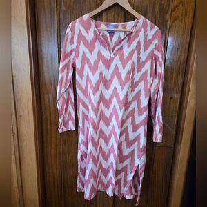 Pine Cone Hill Fine Linens Caftan Beach Cover Nightgown XSMALL Pink Zig Zag