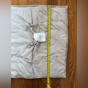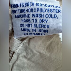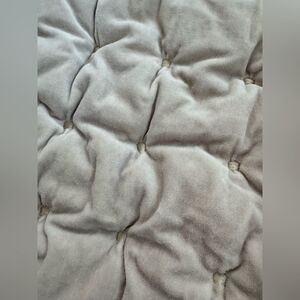 This pillow sham comes with its original packaging. Washed but never used. Cream-colored velvet with ties in back. Measurements included.