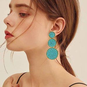 Pine Green Beaded Triple Tier Earrings Bohemian Bold Boho Statement Jewelry New