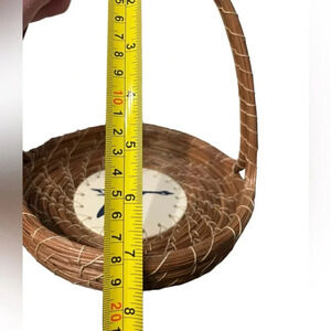 Pine Needle Handle Basket With Handpainted Ceramic Bird Plate Bottom Sig…