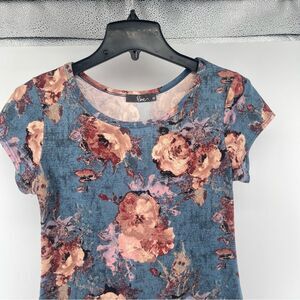 Pine Blue Pink Floral Tunic Top Medium Cottagecore Boho Romantic Y2K Style J-75493
