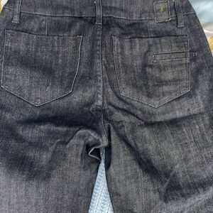 I love these ! I love the bottoms and I love the secret pocket. They feel like a really nice quality (I have never heard of them before). 26 with inseam 27”. Excellent condition (ragged bottoms per style)