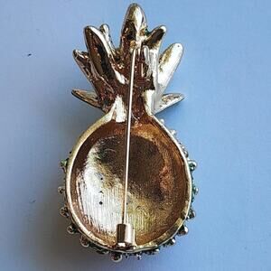 Pineapple Brooch Green and Yellow Rhinestone on Green Enamel Tropical Fun