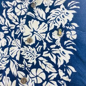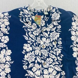 Pineapple Connection Blue & White Floral Short Sleeve Hawaiian Shirt Mens L