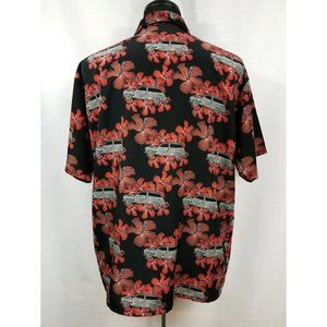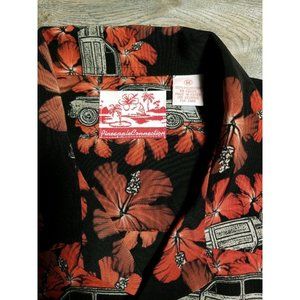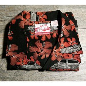 Pineapple Connection Medium Mens Short Sleeve Hawaiian Hibiscus Wood Panel Wagon