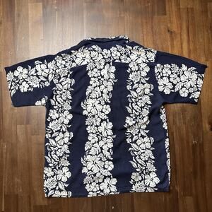 Pineapple Connection Shirt Mens Extra Large Navy Hibiscus Hawaiian Aloha Camp
