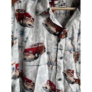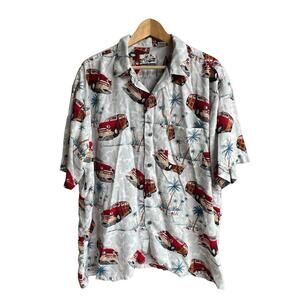 Pineapple Connection Vintage Cars Colorful Print Hawaiian Camp Shirt Size XL