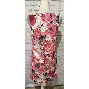 Pineapple Cove Pink Tropical Floral Rayon A-Line Sleeveless Dress Womens Large