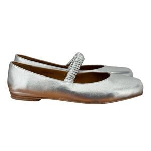 Step into sleek sophistication with these Pineapple by Georg Jensen metallic silver Mary Jane flats. Their ballet inspired silhouette and elastic strap create a graceful yet modern look that’s perfect for everyday wear or evening elegance.