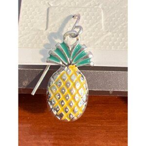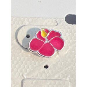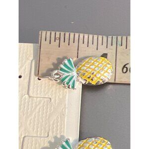 Pineapple Hibiscus Plumeria Stud Dangle Earrings Set Silver Tone Enamel NEW