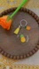 Cute pineapple keychain with a yellow tassel and orange charm. Perfect for adding a fun touch to your keys.