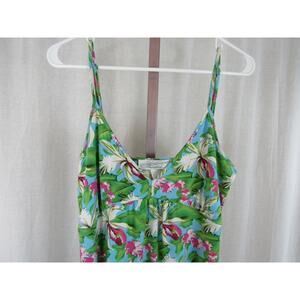 Pineapple Moon Medium Green Blue Hawaiian Tank Maxi Dress Floral Palm Leaves