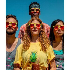 Serving tropical energy with every step. These pale yellow frames with baby blue arms and non-reflective red-tinted lenses were made for sunset vibes and sprinting into golden hour. Not polarized, but still full UV400 protection, so you're covered while you chase the sun.