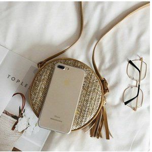 handbag purse cross body mini bag beach pool sunbathing sun-bathing tanning vacation tropical cruise paradise island hawaiian pineapple art deco printed patterned fun quirky wicker burlap weave basketweave retro feminine flirty sexy unique chic boho bohemian nautical coastal sailor ocean sea sealife beachy vibes laid-back relaxed bright vibrant colorful stylish trendy fashionable multi-way wear bold edgy cute minimalist neutral simple basic timeless elegant must-have spring break summer warm weather staple