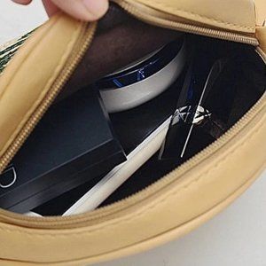 Tropical Pineapple Print Round Woven Rattan Crossbody Shoulder Bag