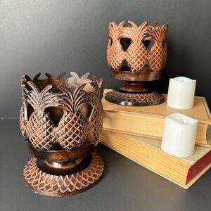 Pineapple Pedestal Candleholders Set of 2 Metal Art