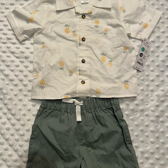 2 PC Set! Pineapple button-up shirt paired with stylish green shorts. Ideal for summer! Boys 12M
