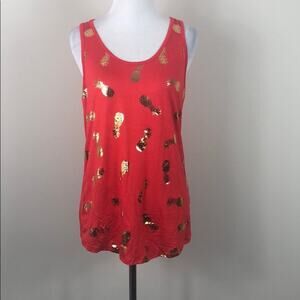 Pineapple print orange tank top. 95% rayon, 5% spandex.