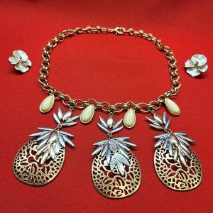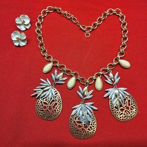 Pineapple Tropical Summer Themed Necklace & Floral Earrings Set