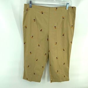 Pineapple embroidered Capri pants khakis White Stag 10 high waist flat front EUC