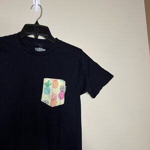 Black shirt with brightly colored pineapple pocket tee. Size small unisex.