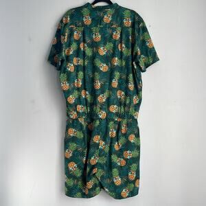 Pineapple sunglasses one piece short sleeve short full zip festival Pride romper sz XL