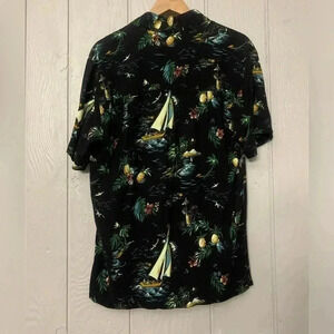 Hawaiian shirt with pineapples sail boat palm trees mountains birds