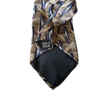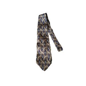 Pinecone Brown Tan Silver Blue & Purple Abstract Pattern 100% Silk Tie Len:59.5"