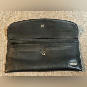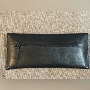 This wallet Vintage Pineda Covalin Wallet features a striking combination of black and red, highlighted by a vibrant floral design in a folk art style. Its sleek silhouette is complemented by the intricate embroidery, making it a standout accessory for any occasion. Excellent like new condition.