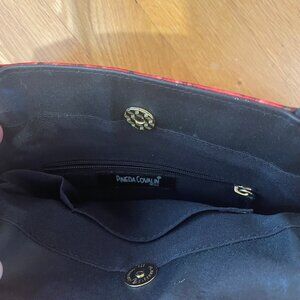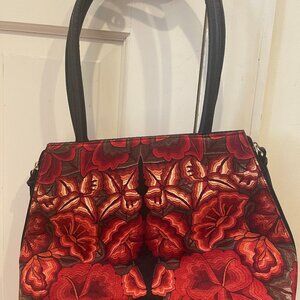Colorful Red Floral purse by Pineda Covalin Mexico designer. In great shape. Snap closure, zipper inside pocket and open pocket. Over the shoulder bag.