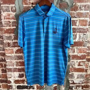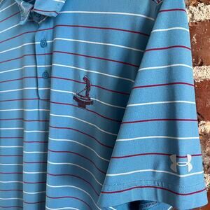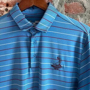 Pinehurst Golf Club Under Armour Blue Striped Polo Shirt Size M