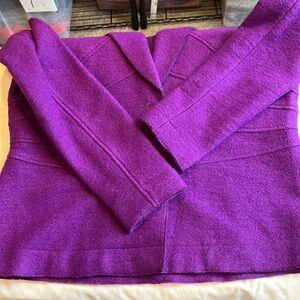This is a beautiful blazer wool blend A beautiful shade of purple.. snap front, it has three large snaps. lapel collar.. New without tags.. Beautiful! Fast shipping! Five star rating!⭐️