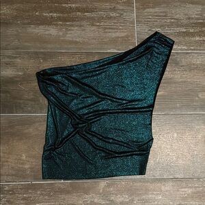 This striking green crop top from Ping features an asymmetrical design that hugs the body for a flattering fit. The fitted silhouette is perfect for showcasing your style, while the unique cut adds a modern twist. Ideal for making a statement, this top is a versatile addition to any wardrobe.