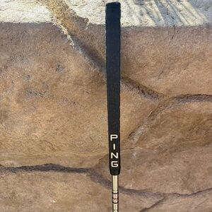 The Ping Karsten Bergen 36" Mallet Putter features a head with a mallet shape, perfect for precise putting on the golf course. This right-handed club with a standard lie angle and a steel shaft for added durability and control. Made in the United States by Ping. Original grip.