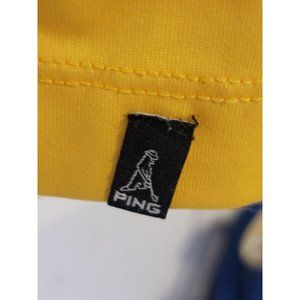 Elevate your golf game with a Men's Large, Yellow Ping Golf Polo Shirt. Boasting a vibrant color and short sleeves, it ensures comfort and style on and off the course.