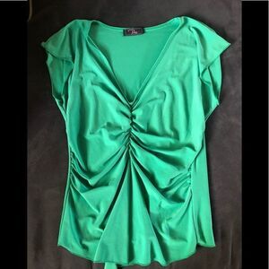 Ping short sleeve top. Rouched center with stretch P. Inc green Light weight cinched top with butterfly sleeves
