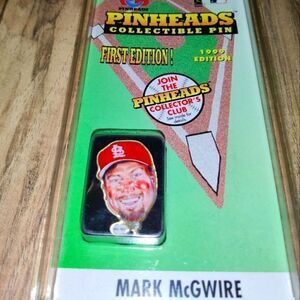 Pinheads Collectible Pin Mark McGwire 1999 Edition First Edition Original New. Packaging has some wear from age and storage. Sold as is.
