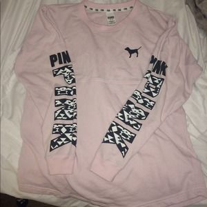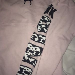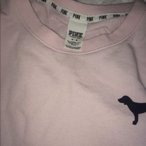 VS pink pullover. Worn handful of times. Accidentally washed with black leggings with fuzzy lining and little black lint balls randomly on sweater. Super cute and in good condition still.
