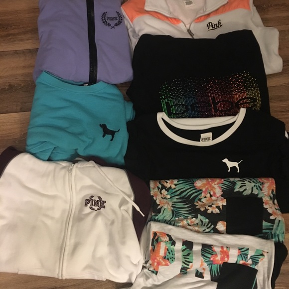 Four pink hoodies two tanks one shirt one Bebe hoodie one pink sweater