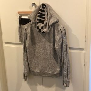 Pink grey and black sweatshirt and short set the size is extra small I have one short and one sweatshirt sold as a set